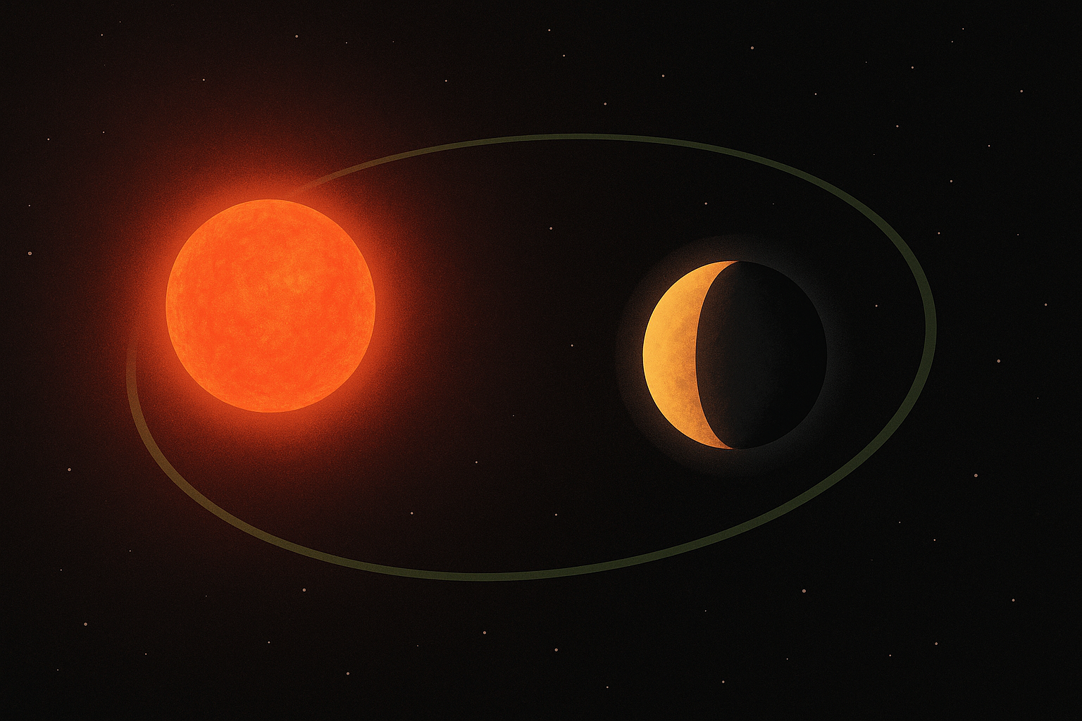 ※ 아래는 ‘M형 왜성 주변의 가깝고 좁은 거주가능대와 조석 고정으로 밝은 면/어두운 면이 갈리는 행성’을 개념적으로 표현한 이미지입니다.