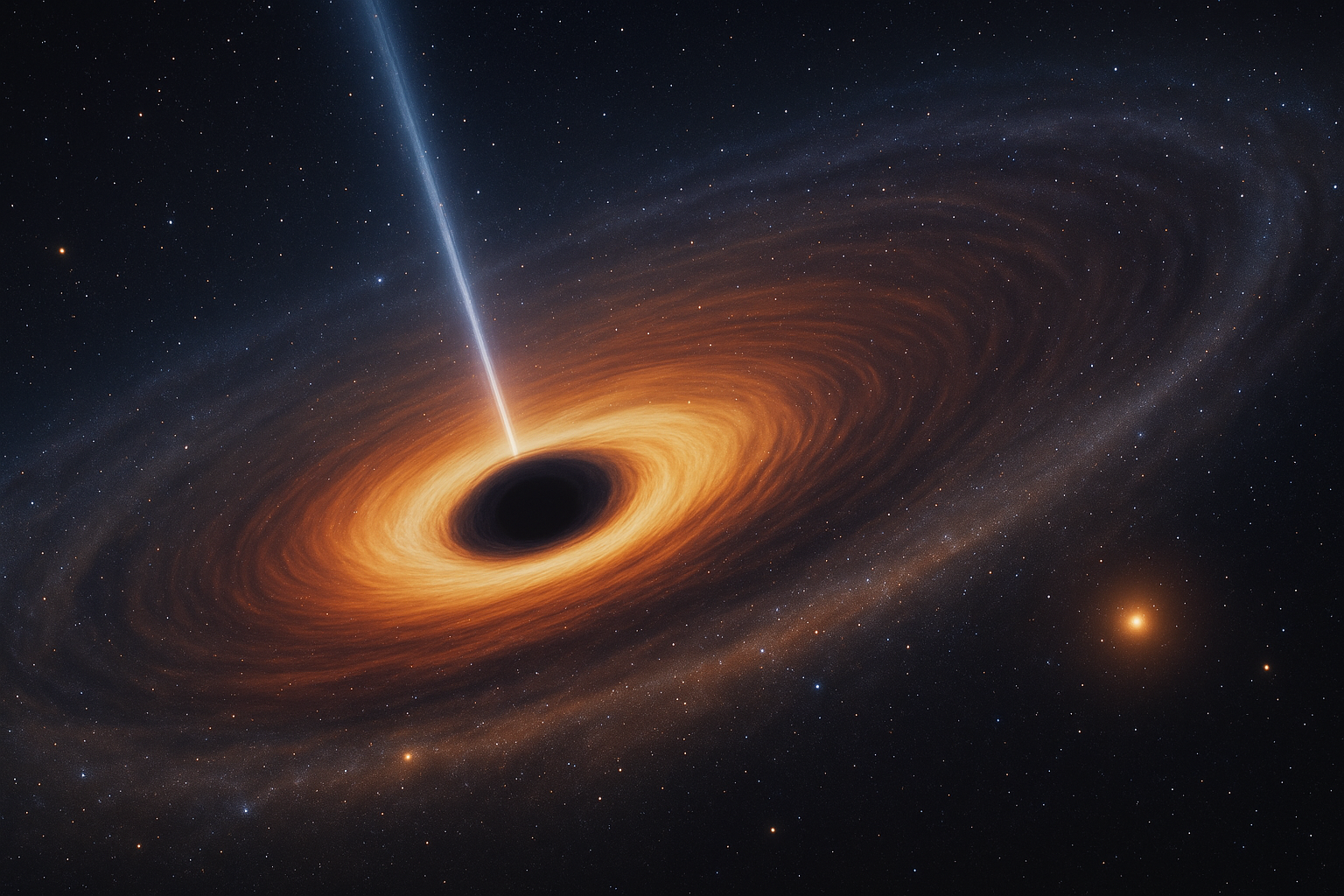 ※ 아래는 은하 중심 블랙홀 주변(가스 원반·별 궤도)을 개념적으로 표현한 16:9 삽화 이미지입니다.