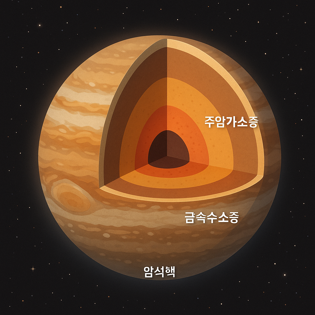 ※ 아래는 가스 행성의 내부 구조와 대기층을 개념적으로 표현한 이미지입니다.