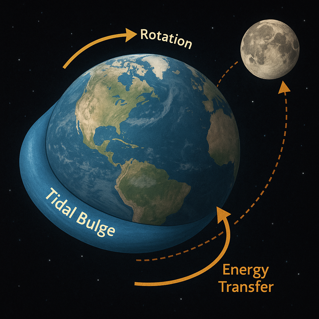 지구의 하루는 정말 조금씩 길어지고 있으며, 주된 이유는 달이 일으키는 조석 마찰로 지구의 자전 에너지가 달의 궤도 운동으로 옮겨가기 때문입니다.“하루가 길어진다”는 말은 거창하게 들리지만, 우리의 시계로는 거의 느끼기 어려울 만큼 미세한 변화입니다. 그래도 과학자들은 위성·레이더·원자시계·지질학적 기록을 통해 이 변화를 정밀하게 측정합니다. 긴 시간 눈금으로 보면 지구는 아주 조금씩 느려지고, 그만큼 하루 길이(Length of Day, LOD)가 늘어납니다. 왜 이런 변화가 일어나는지, 또 단기(계절~수년)에는 왜 오히려 빨라졌다 느려졌다 하는지, 차근차근 쉽게 풀어보겠습니다.※ 아래는 지구 자전과 달의 인력으로 생기는 조석 볼록, 그리고 에너지 전달을 개념적으로 표현한 이미지입니다.🌊 조석 마찰:..